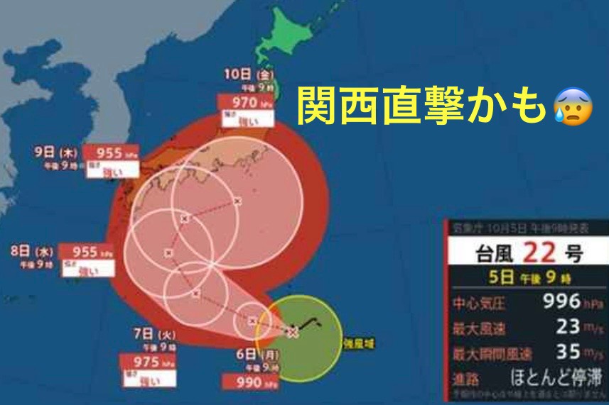 ※台風22号(ハーロン)は右に急カーブで西日本縦断・関東地方直撃の可能性も!